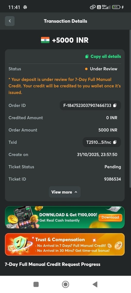 1. My deposit amount not received yet please my deposit amount credited quick