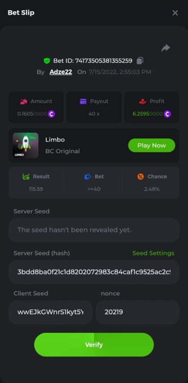 2. Bet id. 74173505381355259 https://bc.game/user/profile/1710370 i have posted this day of...but i forgot to include bet profile bet id - 74173505381355259 https://bc.game/user/profile/1710370