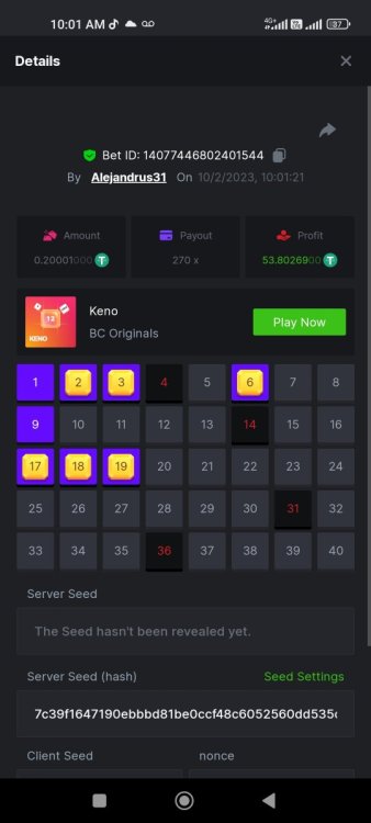 2. Suerte a todos BOUNTY 208.7312x https://bc.game/#/sd/11447QILZYF30Z