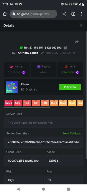 • Favorite Game Plinko